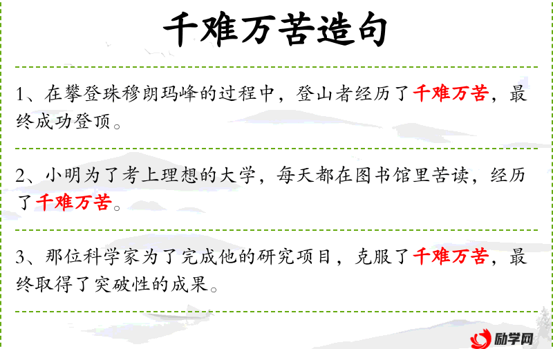 - 相关成语:千难万苦、苦尽甘来、锲而不舍等。