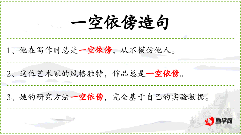 1. 【一空依傍】 - 指在艺术、学术等方面独创而全不摹仿。