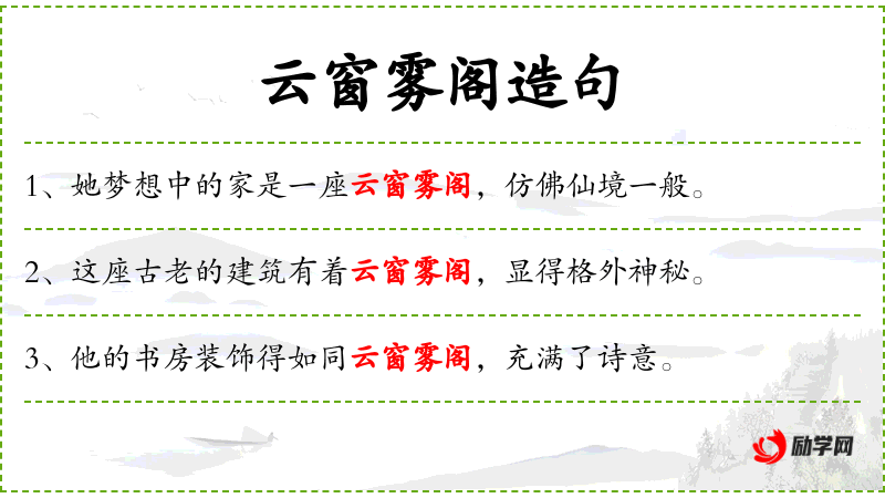 - 变体:古代诗词常用云窗雾阁来描绘隐士的居住环境。