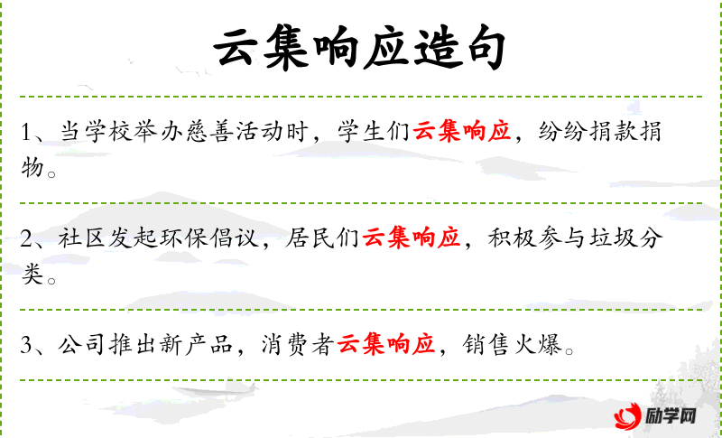 1. 【云集响应】 大家迅速集合在一起,表示赞同和支持。