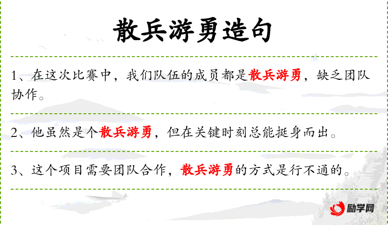 句子:“这个项目需要团队合作,散兵游勇的方式是行不通的。”
