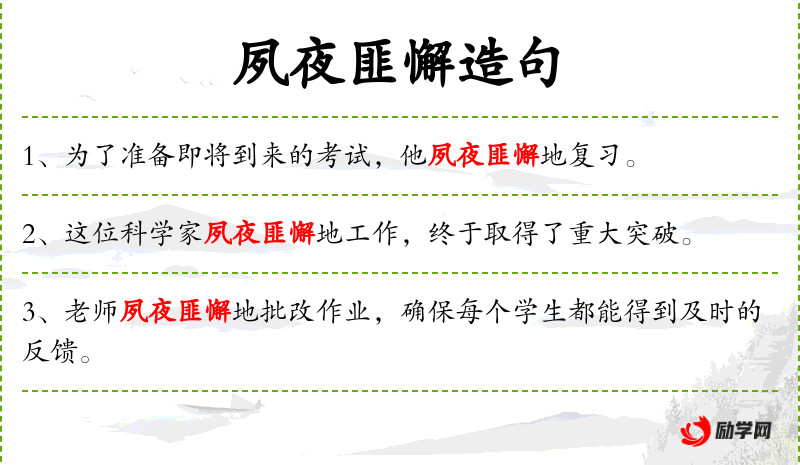 - 成语:“夙夜匪懈”体现了**传统文化中对勤奋和不懈努力的推崇。