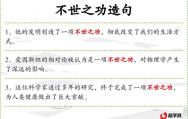- 不世之功:伟业、丰功伟绩、卓越成就