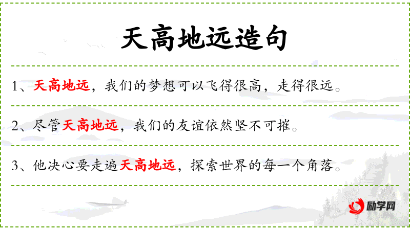 - 天高地远:形容距离遥远,常用于比喻。
