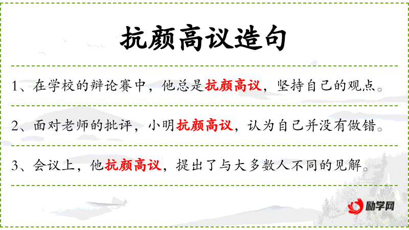 - 抗颜高议:defy public opinion, stand firm in one's views