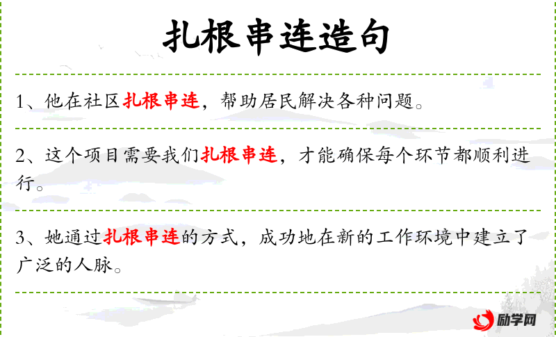 - 谓语:扎根串连、帮助