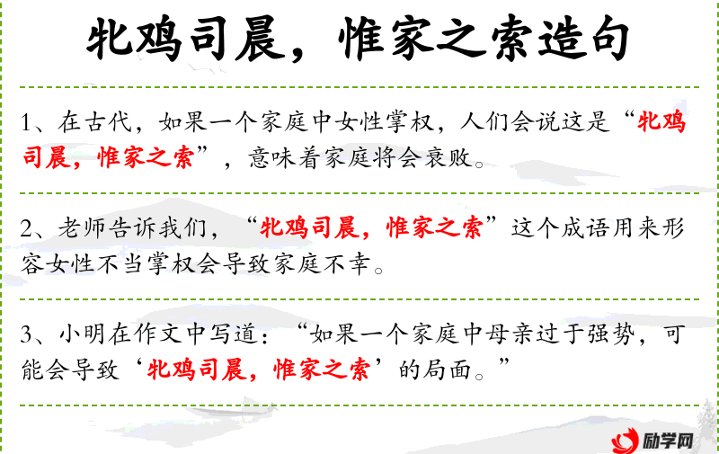 母鸡报晓。旧时比喻妇女窃权乱政。