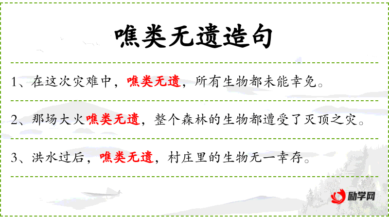 - 啍类无遗:形容瘟疫影响极其严重,无一幸免。