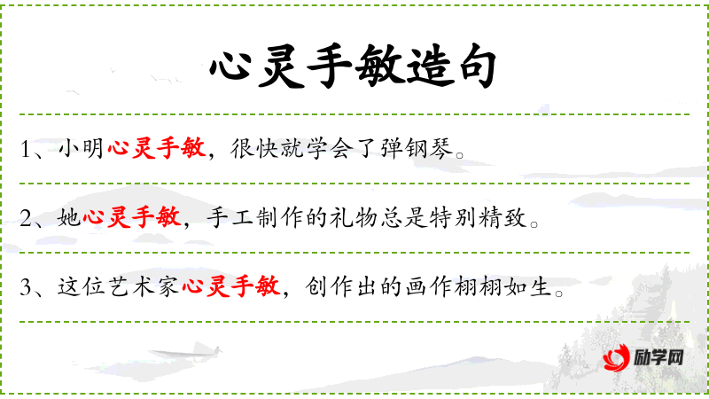 - 心灵手敏:心灵手巧、灵活敏捷