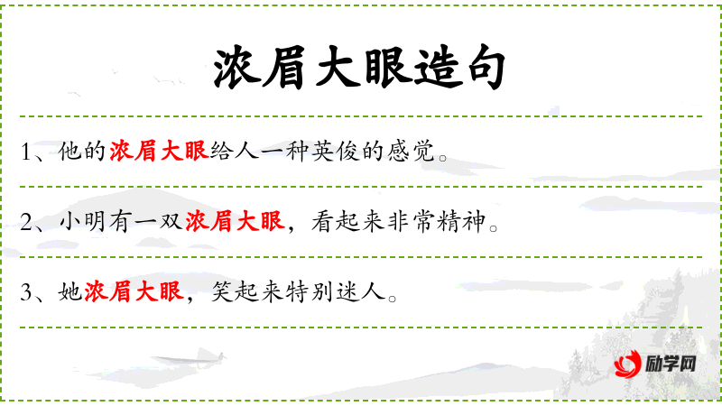 又黑又密的眉毛,大大的眼睛。形容眉目有神的人。