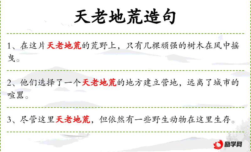 - 天老地荒:形容地方偏远、荒凉,时间久远。