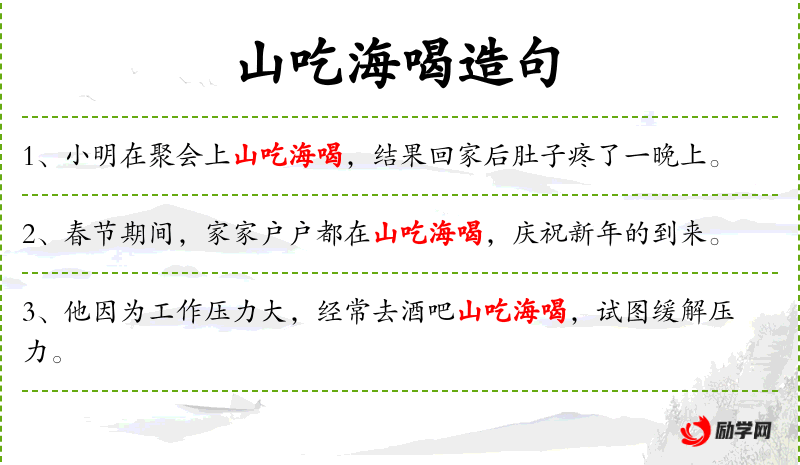 - 宾语:山吃海喝