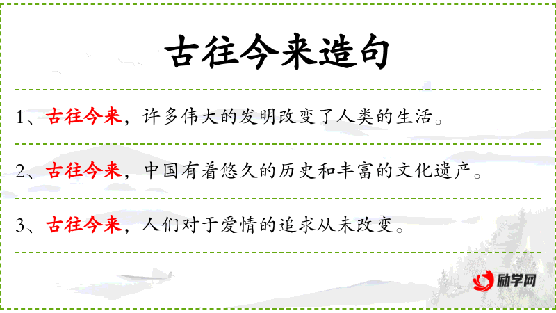 - 古往今来:表示从古到今的时间跨度,强调时间的连续性。