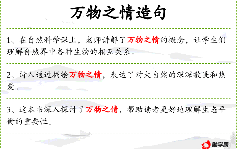 - 状语:在作文中运用万物之情的思想