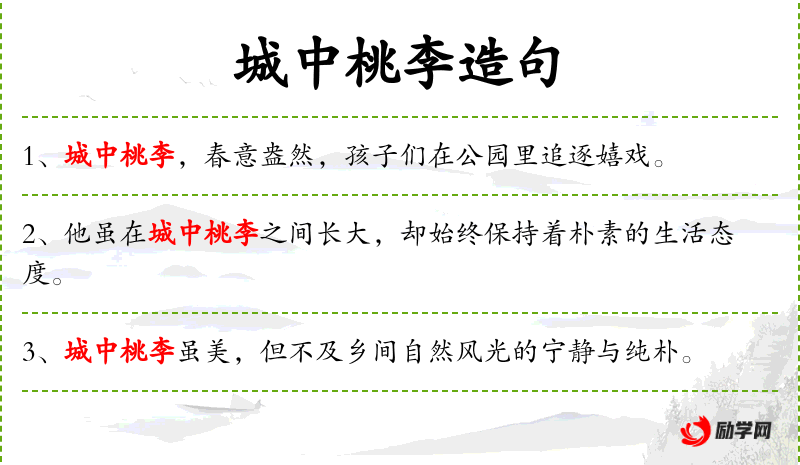 句子:“他虽在城中桃李之间长大,却始终保持着朴素的生活态度。”