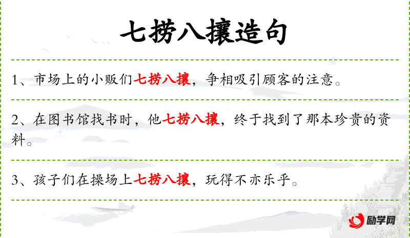 1. 【七捞八攘】 - 到处捞摸扰攘。形容思绪纷乱不宁。