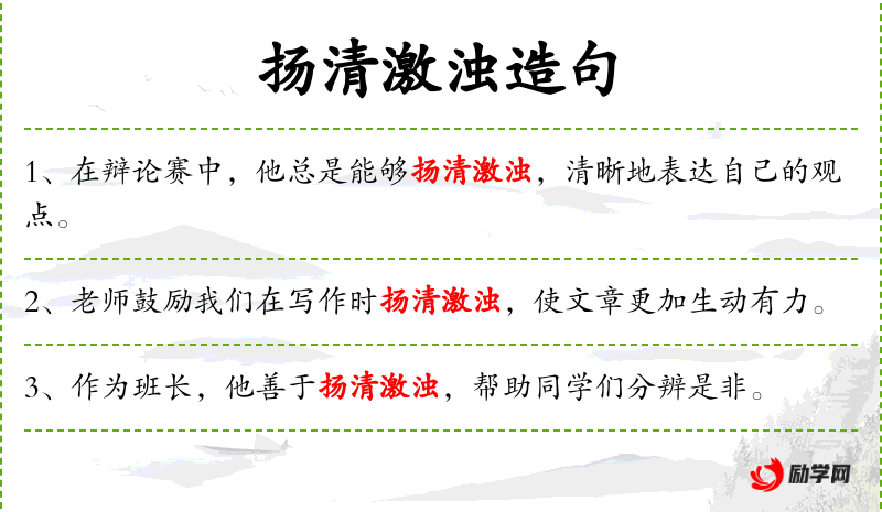 - 文化意义:扬清激浊体现了**传统文化中对于清晰和正确观点的重视。
