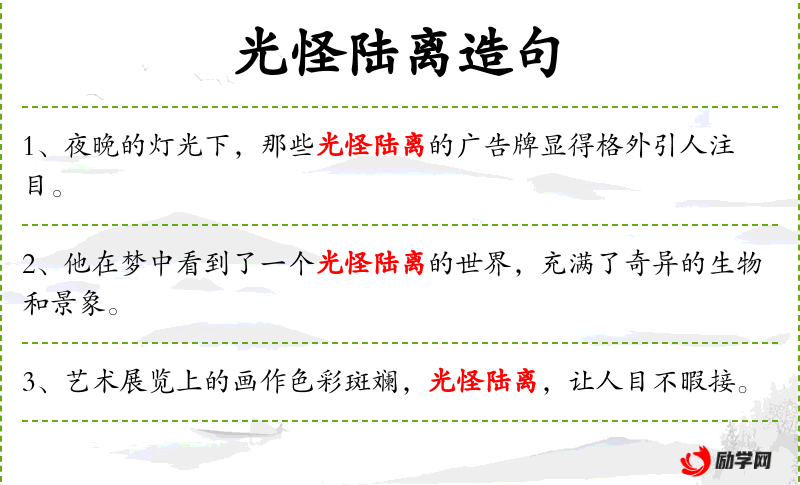 - 相关成语:“光怪陆离”源自古代文学,形容景象奇异、不寻常。