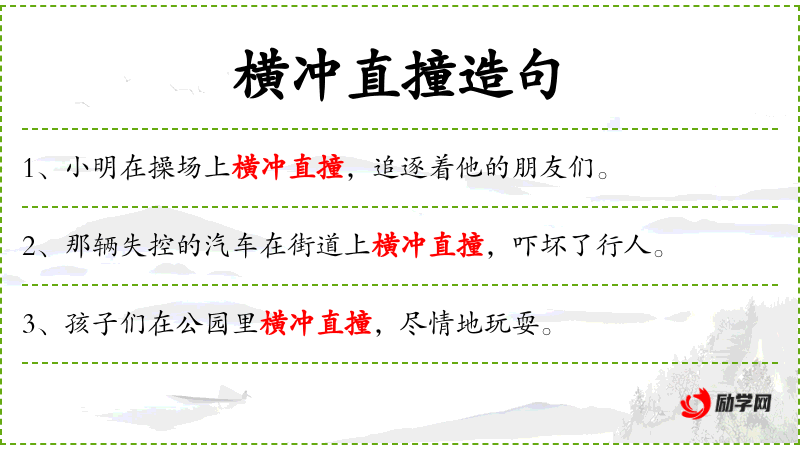 3. 【横冲直撞】 - 乱冲乱撞,蛮横无理。