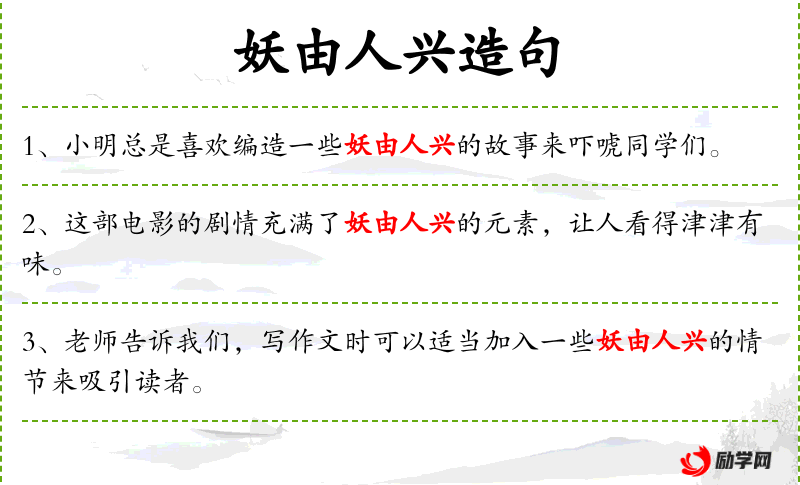- 为了吓唬同学们,小明总是编造一些妖由人兴的故事。