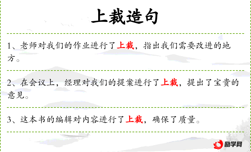 1. 【上裁】 - 旧称皇帝裁决为"上裁"; 敬语,请对方裁决。多用于下对上。