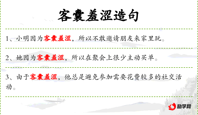 - 客囊羞涩:形容经济状况不佳,囊中羞涩。