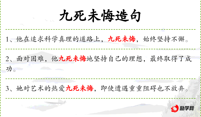- 状语:九死未悔地、即使面临生命危险也不退缩