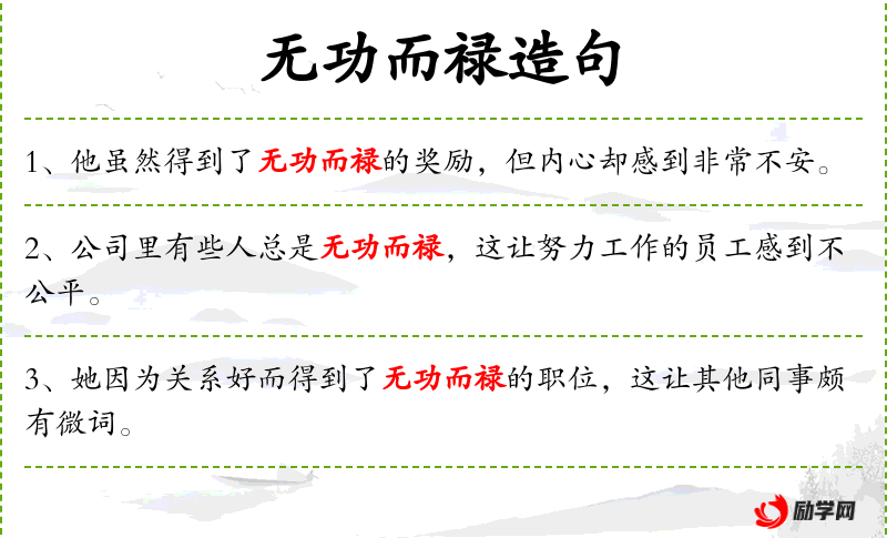 - 无功而禄:成语,意思是得到了不应得的奖赏。