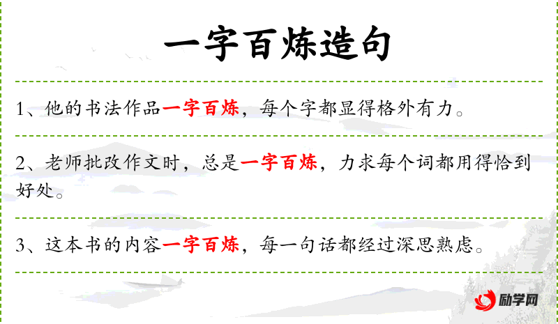 - 一字百炼:形容文字经过反复推敲,非常精炼。