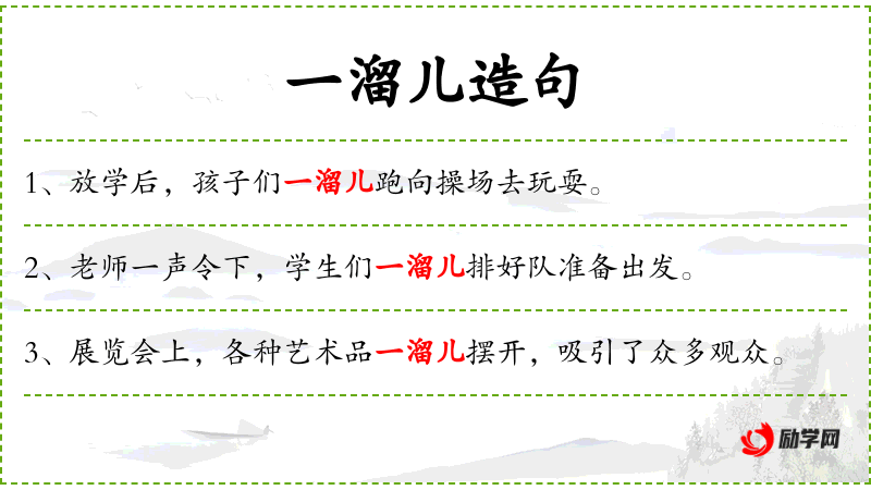 1. 【一溜儿】 数量词。一排;一行:这~十间房是集体宿舍;附近一带:反正就是那~,具体在哪儿我就说不清了。