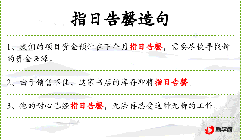 - 指日告罄:即将耗尽或结束。