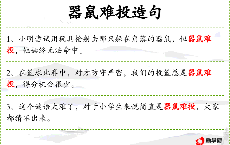 1. 【器鼠难投】 躲在器物旁边的老鼠难以投打。比喻坏人有了庇护就难以制服。
