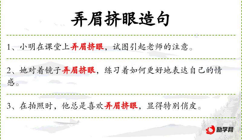 - 弄眉挤眼:一种面部表情,通常表示暗示或秘密。
