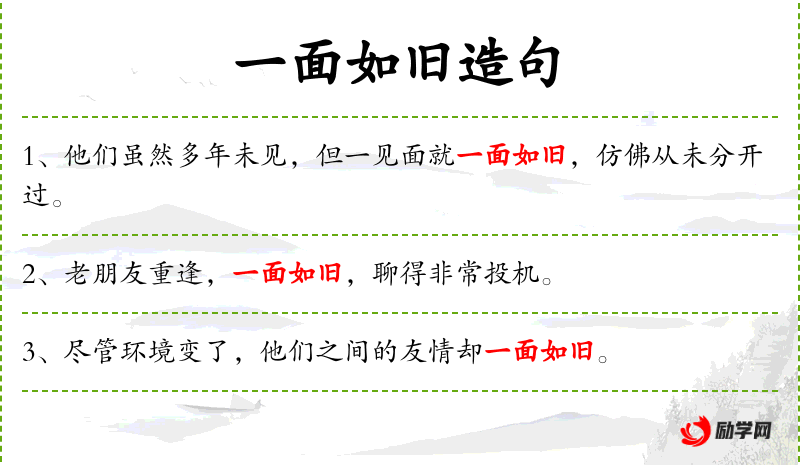 1. 【一面如旧】 - 初次见面就象老朋友一样。