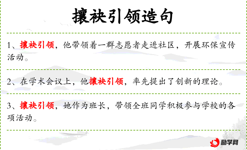- 攘袖引领:比喻积极主动地领导或带头。