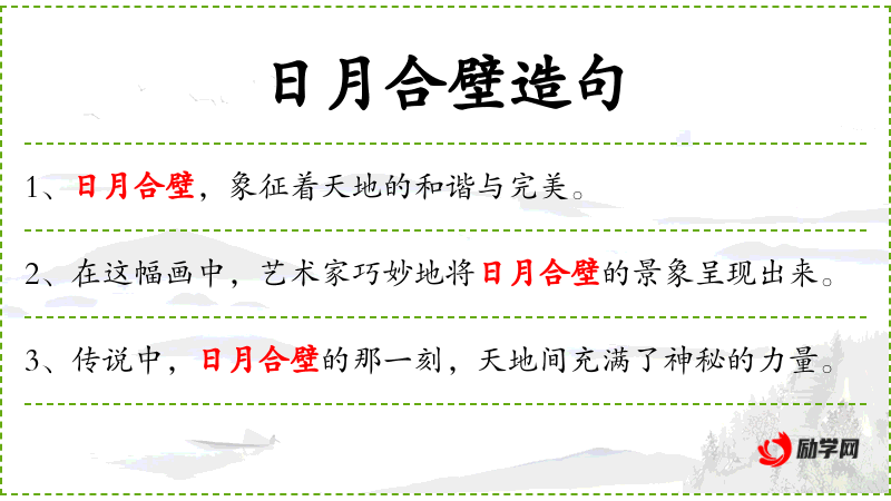 句子可能在讨论天文现象、个人梦想或对未来的期待时出现。在文化交流中,了解“日月合壁”的象征意义有助于更深入地理解句子的含义。