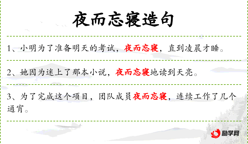 - 夜而忘寝:成语,表示因工作而忘记睡觉。