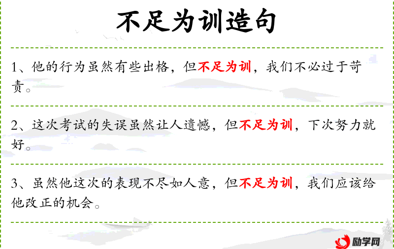 - 不足为训:不足以成为教训,不值得重视或学*。