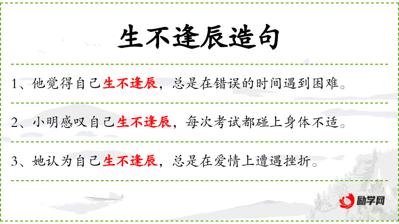 3. 【生不逢辰】 辰:日子,时光。生下来没有遇到好时候。旧时指命运不好。