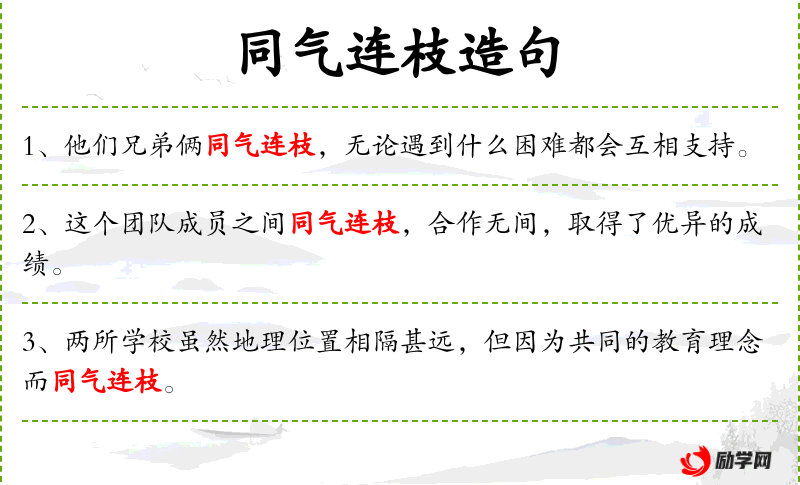 - 同气连枝:比喻关系密切,如同树枝相连。