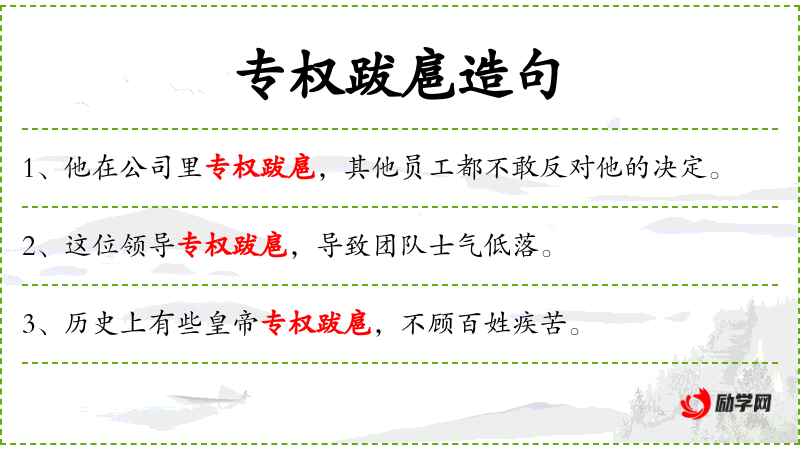 - 专权跋扈:形容君主独断专行,行为霸道。