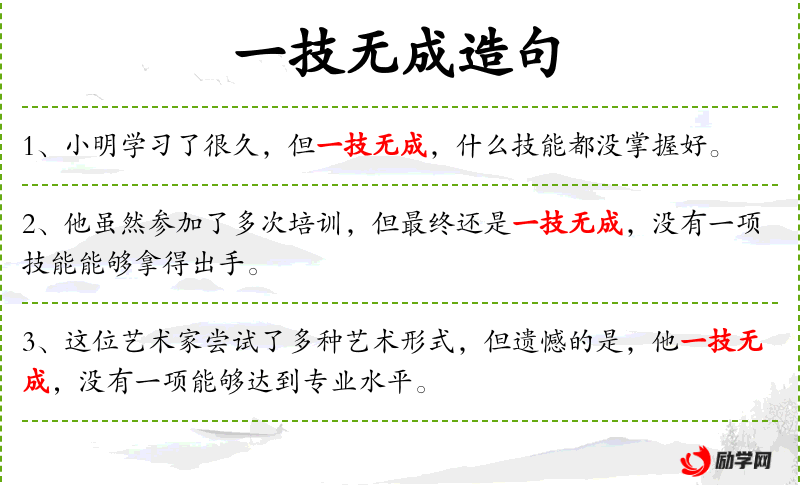 “一技无成”这个成语在*文化中常用来形容一个人在学或工作中没有取得任何成就。这个成语反映了**人对于技能掌握和成就的重视。
