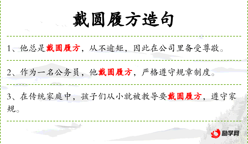 - 宾语:要戴圆履方,遵守家规