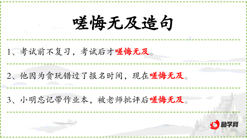 - 嗟悔无及:成语,表示后悔已经来不及了。