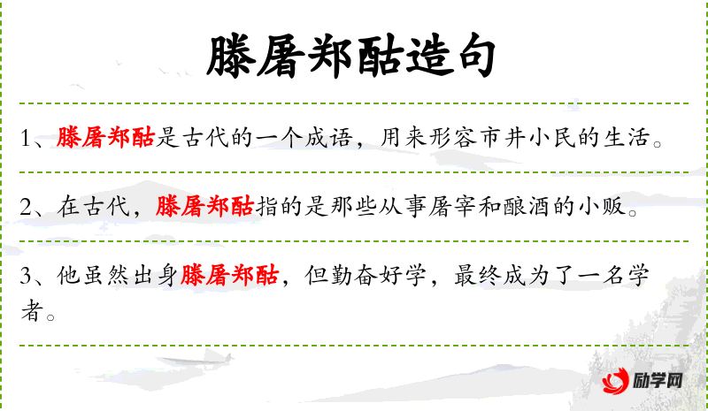4. 【滕屠郑酤】 - 屠:屠夫;酤:卖酒的人。旧时泛指鄙俗的人。