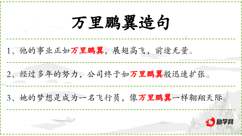 1. 【万里鹏翼】 - 比喻前程远大。