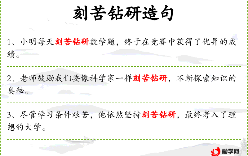 1. 【刻苦钻研】 刻苦:下苦功。下苦功,深入研究。