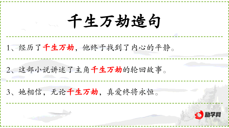 - 千生万劫:形容时间的漫长和经历的多次轮回,常用于强调无论经历多少困难和挑战。