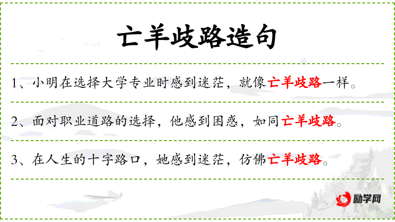 - 比喻成分:就像亡羊歧路一样