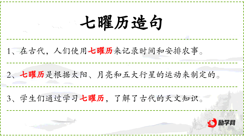 1. 【七曜历】 以日﹑月和五星纪日的历法。我国通行顺序为日﹑月﹑火﹑水﹑木﹑金﹑土,周而复始。始于古代巴比伦(一说始于古代埃及)。我国四世纪时曾有此法。八世纪时摩尼教徒又由中亚康国传入我国。《新唐书.艺文志三》载有吴伯善《陈七曜历》五卷。敦煌发现的历书和占星术著作亦有用七曜历者。